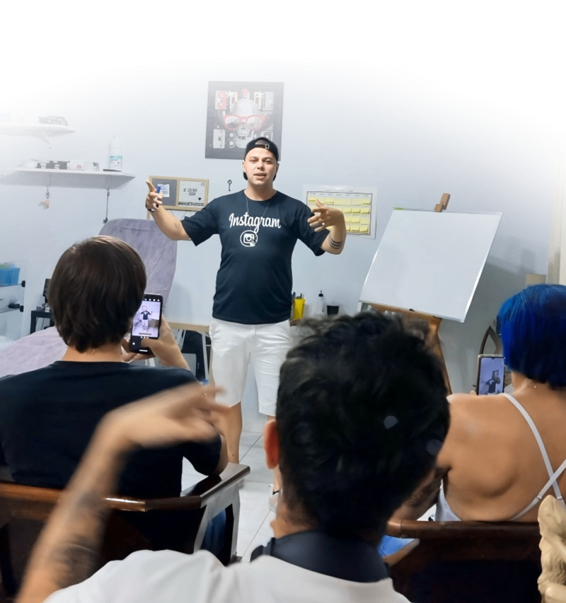 Minha trajetória começou com uma bandejinha de plástico e muita vontade de mudar minha história. Sem grana, sem apoio… só com coragem e fé. Hoje, depois de 10 anos de profissão, já formei centenas de profissionais presencialmente, criei técnicas próprias, fui convidado por escolas renomadas, e transformei dor em propósito.
